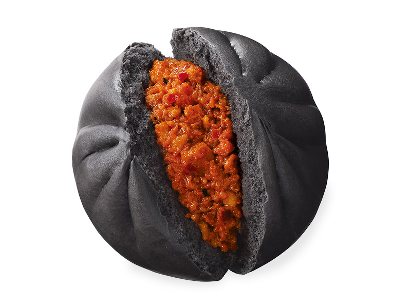 小林さん「麻辣系の商品は黒のデザインが多いから、辛い商品というイメージがつきやすい。それに中華まんの売り場で、黒の見た目はすごく目立つんですよね。あとほら、中の具の赤系の色が映えるでしょ」