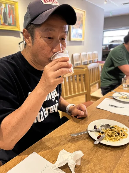 鰯と香味野菜の旨味はどちらもクセが強めだから、辛味にまだまだ負けていない。それどころか、クセ強旨味×辛味のコラボが、ケンカをするどころかお互いを讃え合っているようだ。それらがアルデンテの麺に絡み、ハーモニーに深みが一つ加わった。旨味と辛味を高次元で融合させる、さすがのピエトロクオリティだ。辛さの豪速球を何とか攻略した満足感からか、かいた汗が、スポーツの後のようにすがすがしく感じた。それを見た栄田シェフは「まだ序の口ですよ」と言わんばかりに笑った。