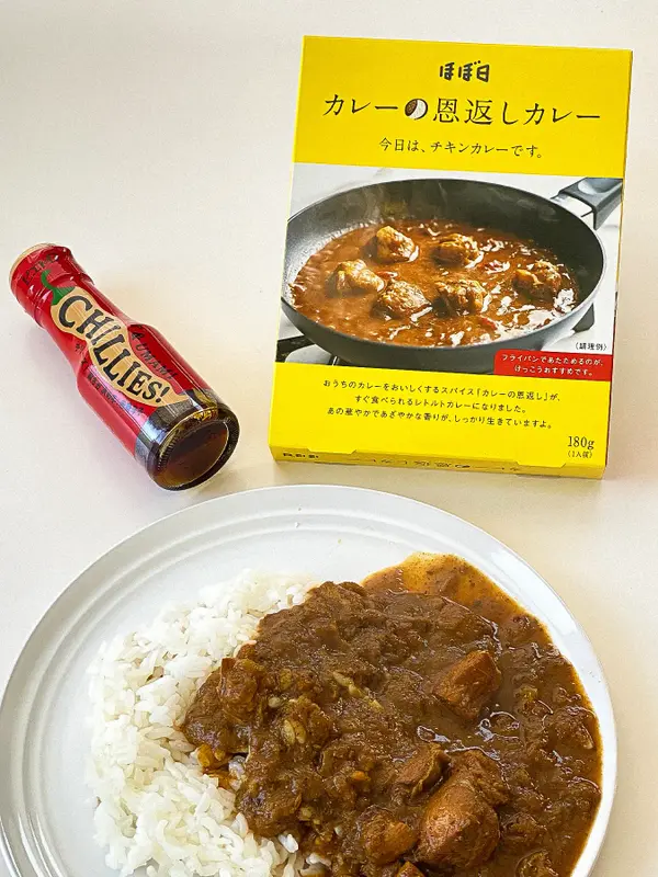 みなさんもこんな風に、「カレーの恩返しカレー」と「CHILLIES!(チリーズ)」の組み合わせ、色々と楽しんでみてはいかがですか😃?