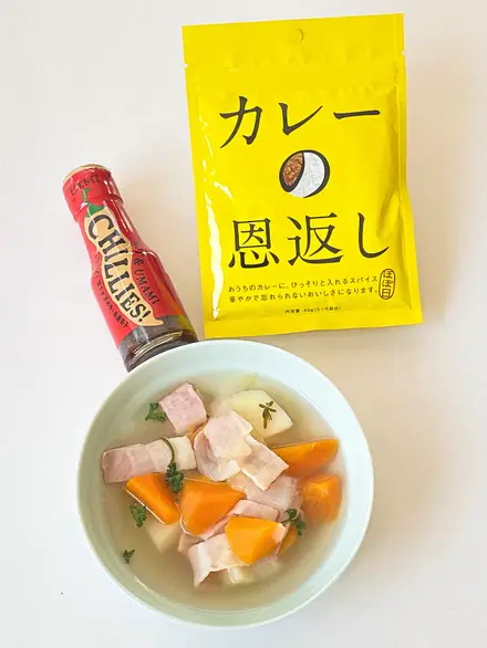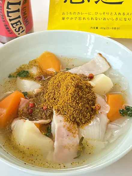 薄味に作ったシンプルなポトフに「カレーの恩返し」を入れてみる。