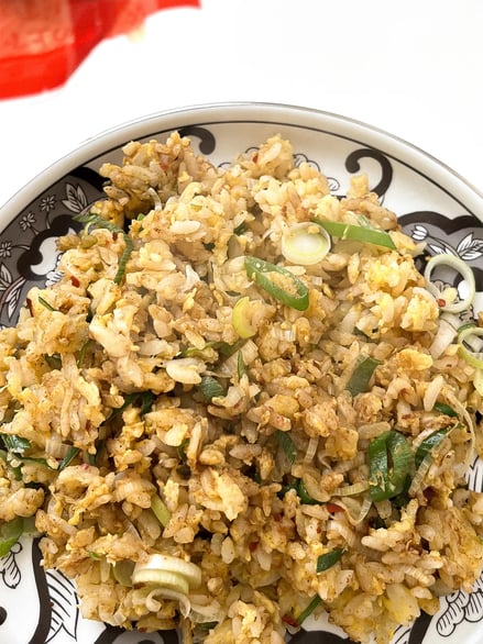 お酒を飲んだあとでも手軽で嬉しい、辛くて旨〜い炒飯を作ってみます👩🍳✨