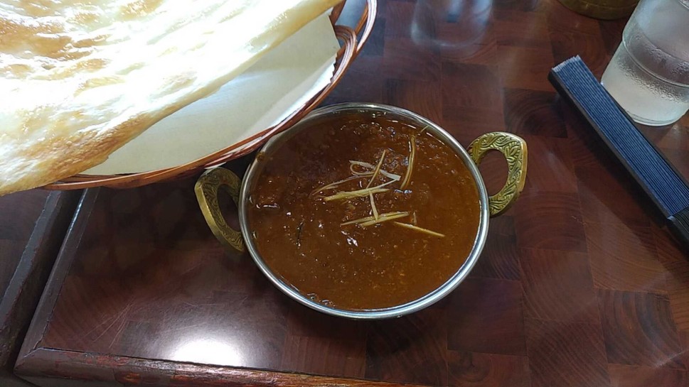 お店のメニューでは一番辛くて4(Hot)ですが、Super Hotでお願いしました。若干の酸味が感じられ、ネパール系とは違う味です。