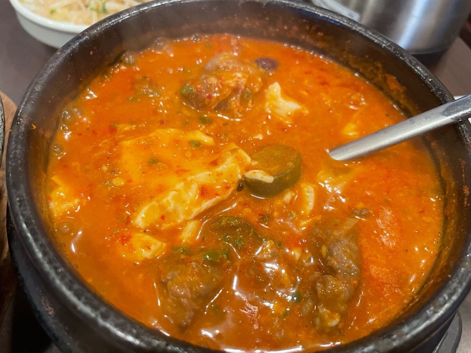 期間限定の、メキシカンスンドゥブ!お豆とハラペーニョ、とろとろの牛筋?牛肉?が入ってます。オッキのスンドゥブはホンマに美味しい!メキシカンなのに、ちゃんとスンドゥブ!笑 けど、いつも+330円で極辛にしてますが、もう少し辛くてもいいかなぁと思います。青唐辛子トッピング+100円もマストです!
