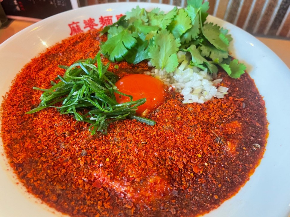 堀江の麻仁さんが吹田に出来ていたので行ってみることに。地獄がメニューになくて、薬膳なるものが!5種類以上のスパイスとパクチーって、最高ですやん。麻辣より辛さは控えめなようなので+150円で辛増しに。見た目真っ赤っか!香りも痛い!よく混ぜて実食。美味しい〜クセになるスパイス使いで、最後まで美味しい。卓上の粉山椒や花椒オイルで痺れ追加も更に美味しかったです。