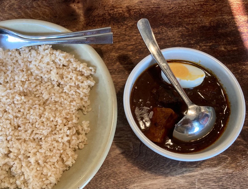 メーヤウ信大前店に行くと、イエローとブラックのツインカレーを頂きます。 ブラックやブラウンは、長野メーヤウオリジナル。特にブラックは本当においしいですねー。コロナが収束したら絶対行きたいです。