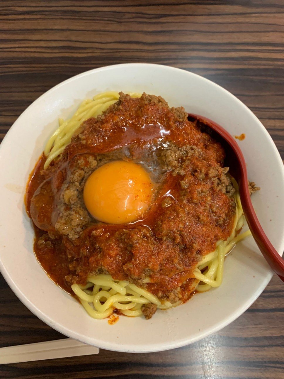 辛さはあまりないけど、美味しすぎる。麺の下に、もやしとかメンマとかニラが入ってる。量多い。
