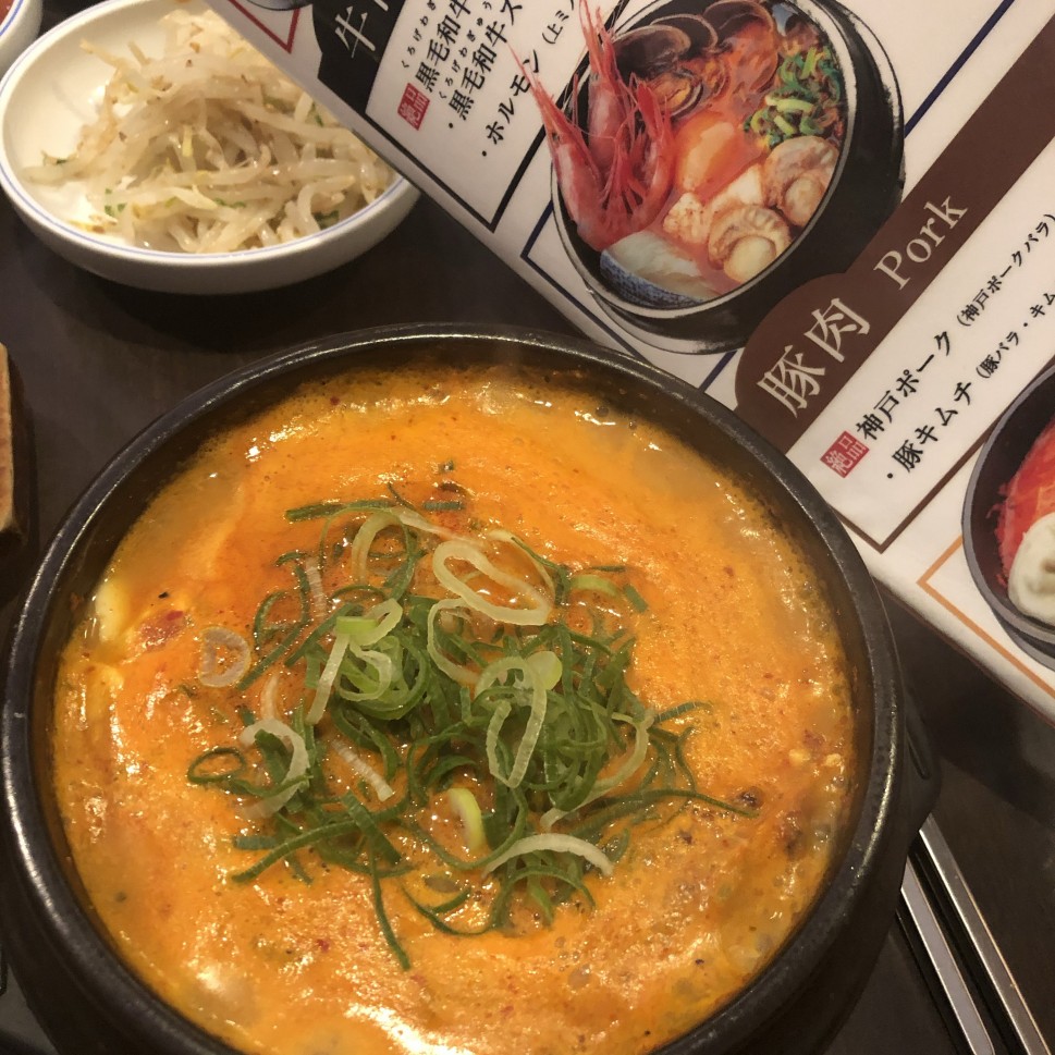 辛さは0〜大辛まで5段階から選べます。もやしナムル、キムチ、韓国海苔が食べ放題です🇰🇷