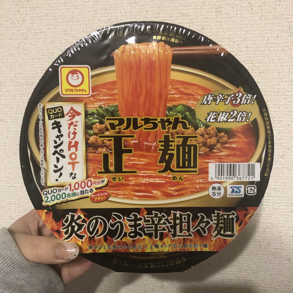 パッケージから結構な辛さを想像しましたが、とても美味しく食べられる旨辛なライン😌ただ「唐辛子3倍!花椒2倍!」なもんで結構むせます。しかしこのクオリティがカップ麺で食べられるのだからマルちゃんはすごい🔥