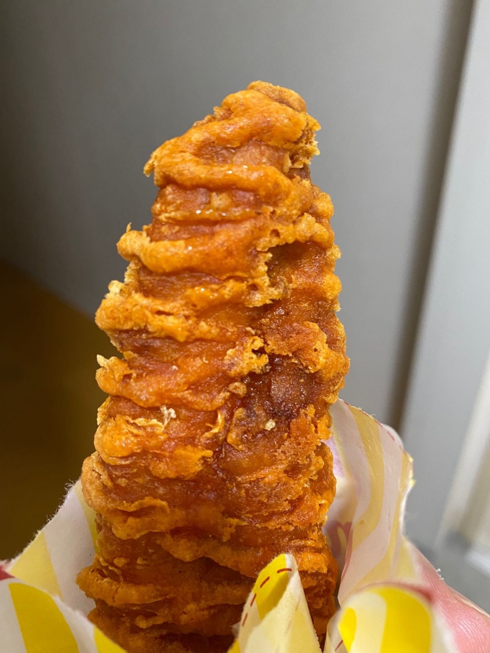 辛さ、旨さ、食感よしのクリスピーチキン。食べた後も、辛さが後を引く感じいいですね〜。ビール🍺と一緒に食べてみたい一品です(^^)