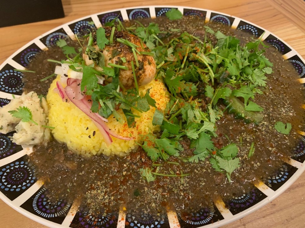 マトンとゴーヤとパクチーのめっちゃ美味しいカレー。
