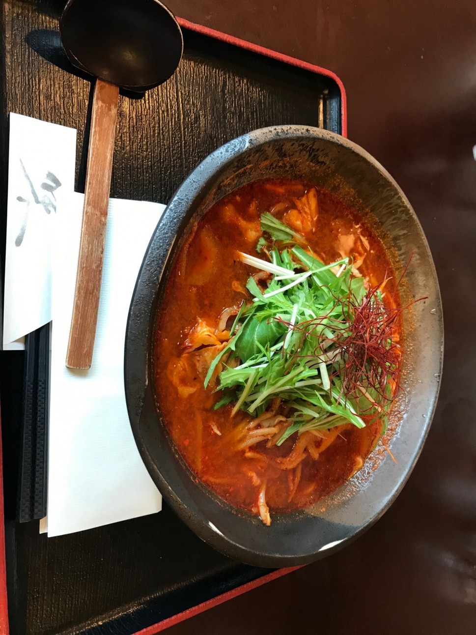 味噌の甘味もあっておいしくいただけます。しかし食べ終わる頃には汗だくです。