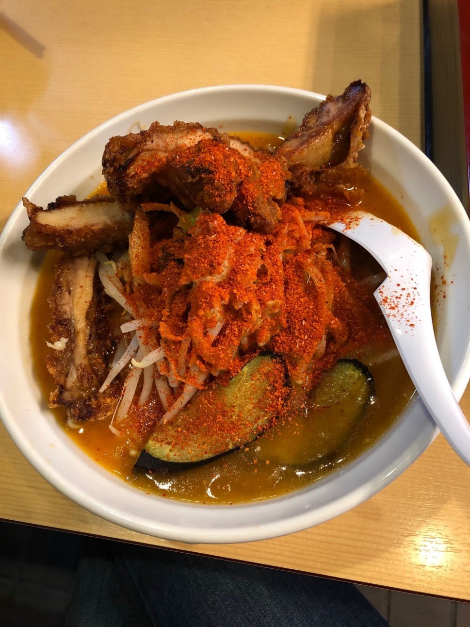 豚骨スープでとても旨味があり美味しかったです😊ちょっと辛さが足りなかったので次回は激辛を食べます🍜