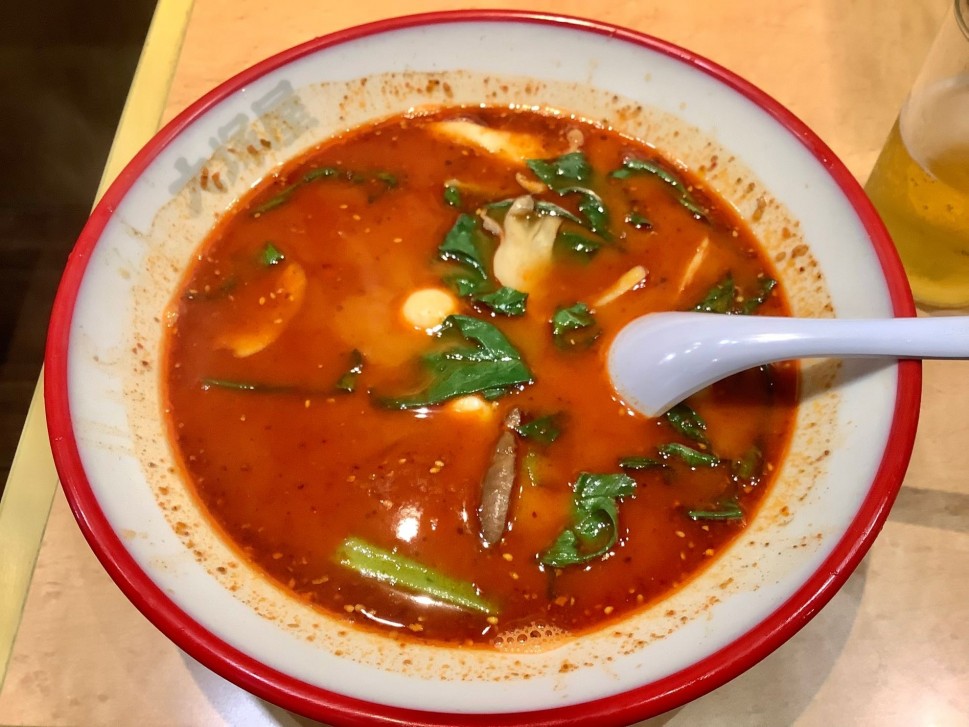 辛さ基準は、白湯<ピリ辛<中辛<大辛<激辛<10辛<30辛<50辛<100辛とのこと。10辛以上が100円課金ゾーンです。50辛で4点台前半という辛ジャッジを見ていたので、30辛なら3点台前半くらいで楽しめるだろうという読みがちょっと裏目に💦最初の1口目からガツン❗️とカプサイシンの苦さ、辛さ、香りを感じるのですが、すぐに消える爽やかな印象があり、思わずうまいって言ってスープも啜ってました。油断したのかどうかは微妙なところでしたが、半分過ぎたくらいからちょっと辛いなぁ、噂通りに蓄積系だなぁと。一気にいかないと危険な気配を感じ、途中から無言で春雨啜ってました笑