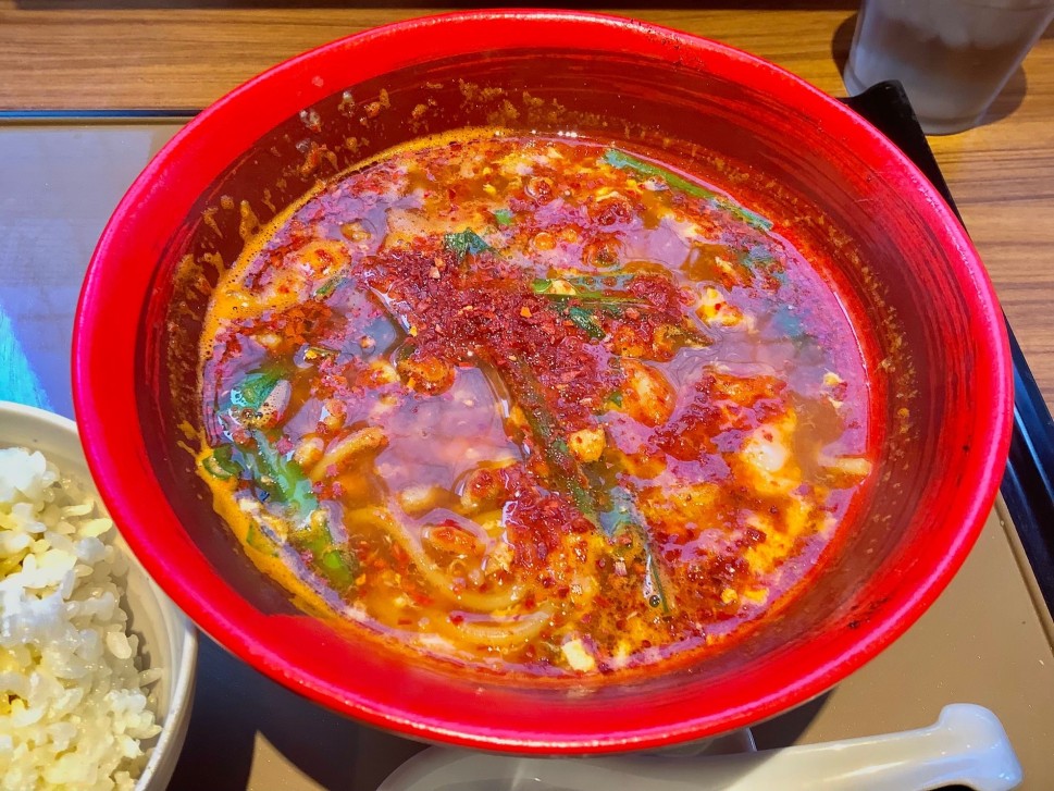うまーい!辛麺としては2.1〜2.2くらいの辛さですが、ご飯投入してのおじやスタイルだと2.6KMくらいかなぁと🌶しっかり辛くて、幸せです。定番化を願い、食べ続けています笑