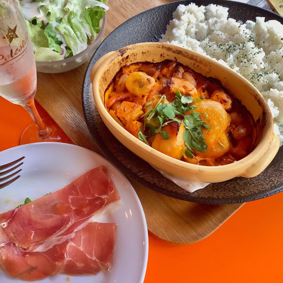 豚肉鶏肉とバナナ、ローストしたピーナッツ、ベーコンに生クリームとチリソースを混ぜたクリームをかけてオーブンで焼いたスウェーデンの定番家庭料理だそうです。