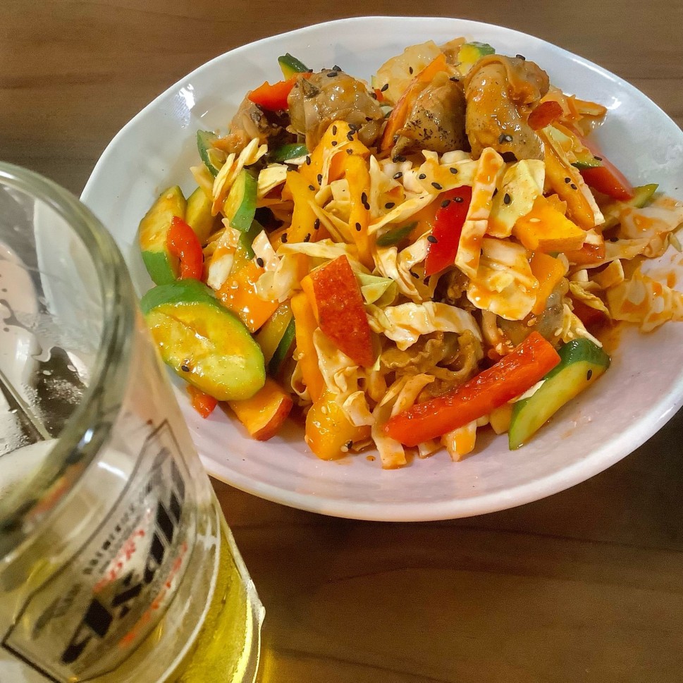 メニュー表では唐辛子1本(MAX3本)でしたが、辛みとしては十分。カプサイシンソースの所謂食べにくさもなく、ビールと一緒においしくいただきました🍺