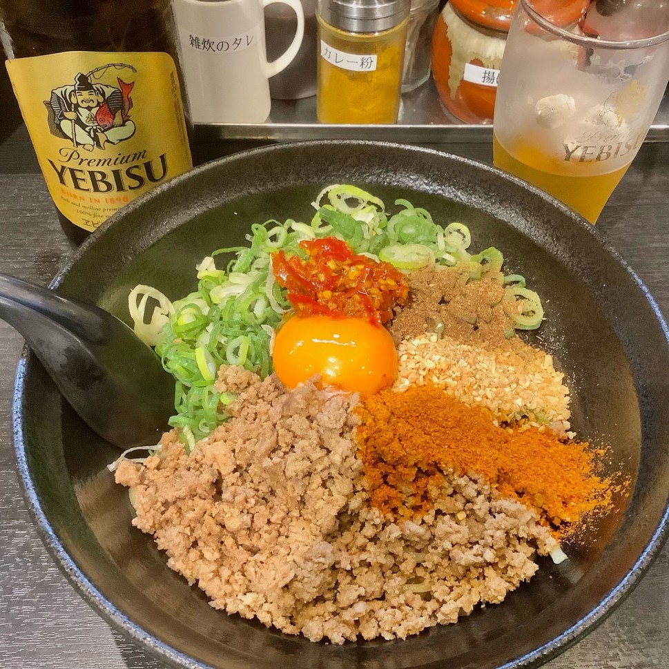 担々麺のいい意味での辛さと、まぜそばのインパクトの強さの融合ですね。ビール(ヱビスの小瓶)に合い過ぎます🍺胡麻の甘さは全然なしで、花椒の痺れ感も辛さも十分満足感あり。