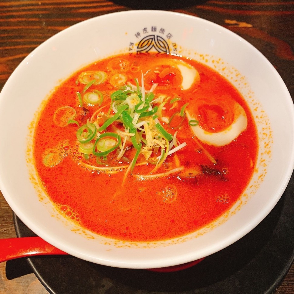 激辛豚骨ラーメン🌶辛い中にも豚骨スープの味がしっかりあり、美味しかったです!辛さ控えめも出来るらしい。