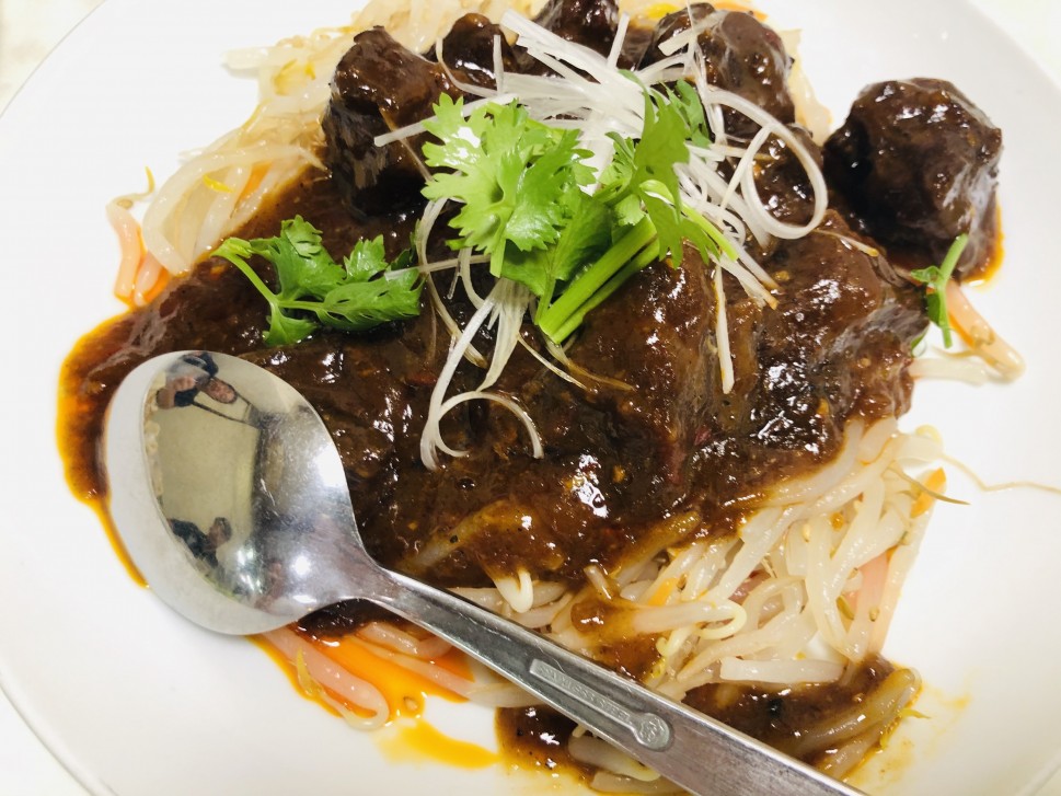 これ、本店の方だと「重慶紅焼牛肉」という名前で、見た目はほぼ同じ。
