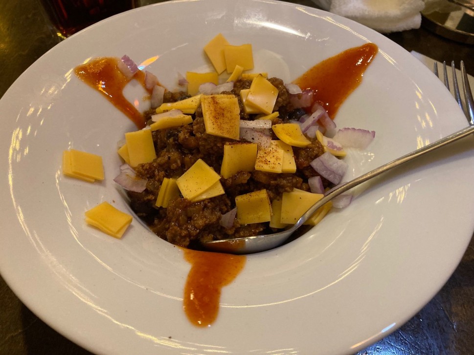 辛い系のバーガーは無さそう。そこでこのチリボール。一応何か聞いたもののよくわからなかった。が、いわゆるタコスミートです!