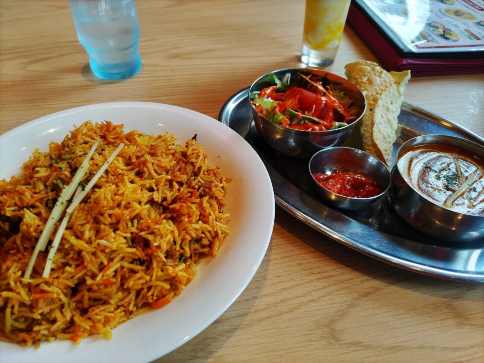 ビリヤニ、チキンがごろごろはいっていて美味しかったです。しかも案外ボリュームがあって、お昼1時頃食べて夜ご飯いらないぐらい腹持ちました😆