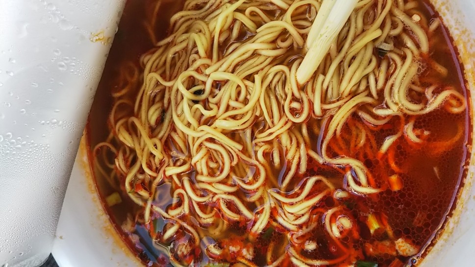 新年初辛がこちらでした。お湯の量が多かったのか?全体的にぼんやりしたお味でした。辛さもほぼなし。麺2倍はおもしろいと思いましたが、残念ながら美味しくない(^_^;)スーパーカップにしといた方が無難です。