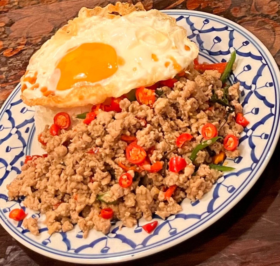 1品目は「#カオガパオ 激辛」。 #かたせ梨乃 さんの演じる役柄は食べて物凄い顔になっていましたが(笑)、ごくごく優しい味付けです。S1の #ソイ六本木 さんで言う #パッキーマオ に相当するのではないでしょうか。