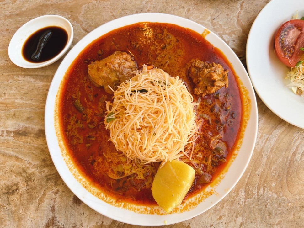 炒めたビーフンにさらさらめのルー。チキンとじゃがいもが入っています。チリパウダーの辛さです🔥しっかり辛いので汗と鼻水が永遠に出ます。これは本当に美味しいのでみんなに食べて欲しい。