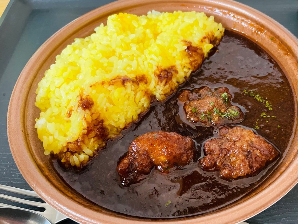 まず、ルーのこの深い照りと色にうっとり。さらさらのルーでスパイスがきいていて、辛いけどとっても美味しい♪