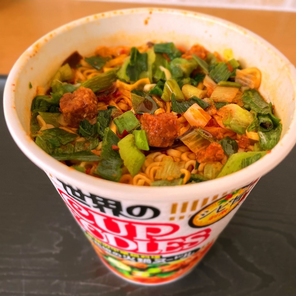 辛さ3、しびれ1の表示。スープが赤いのでドキドキしましたが、辛さはまろやかです。しびれの方が強めに感じました。