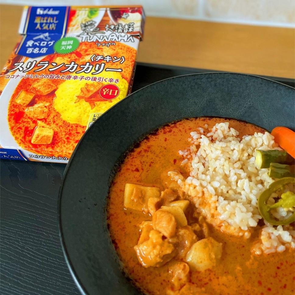 箱表記は5辛ですが、それほど辛味は感じませんでした。でも、辛さとココナッツミルクの優しい甘味と、かつお節エキスや味噌の和の風味が相まってとっても美味しい♪