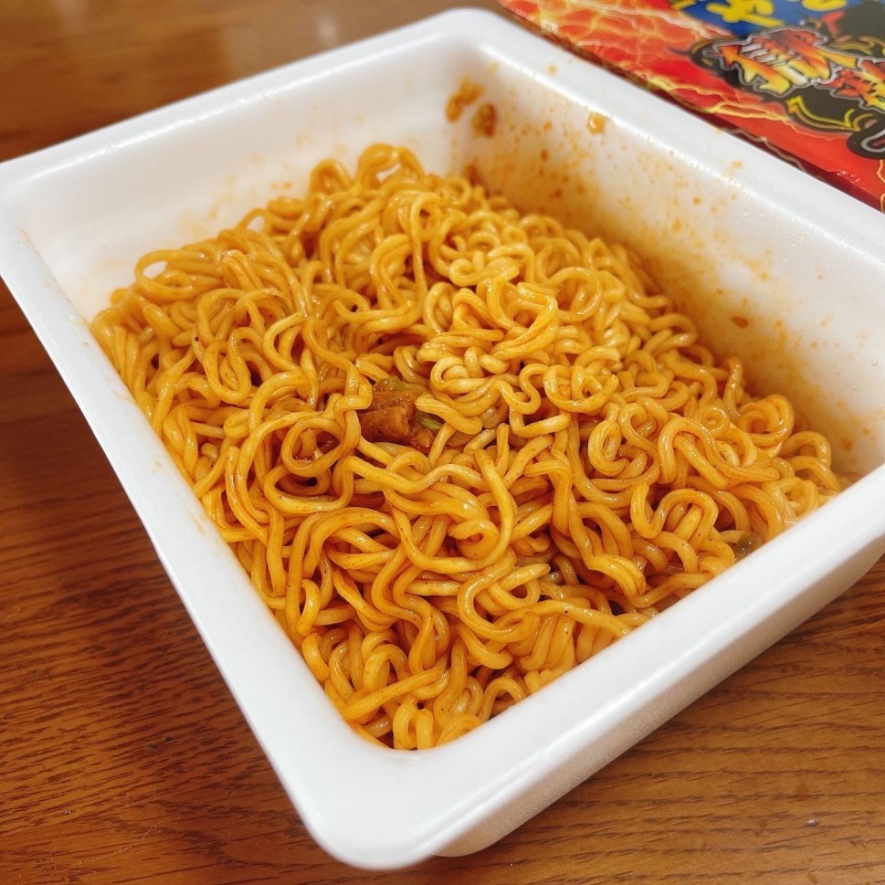 食べてみました。2倍辛いのキャッチフレーズ通り口内に突き刺す痛みが半端ないです。でも胃は全く問題ありません。