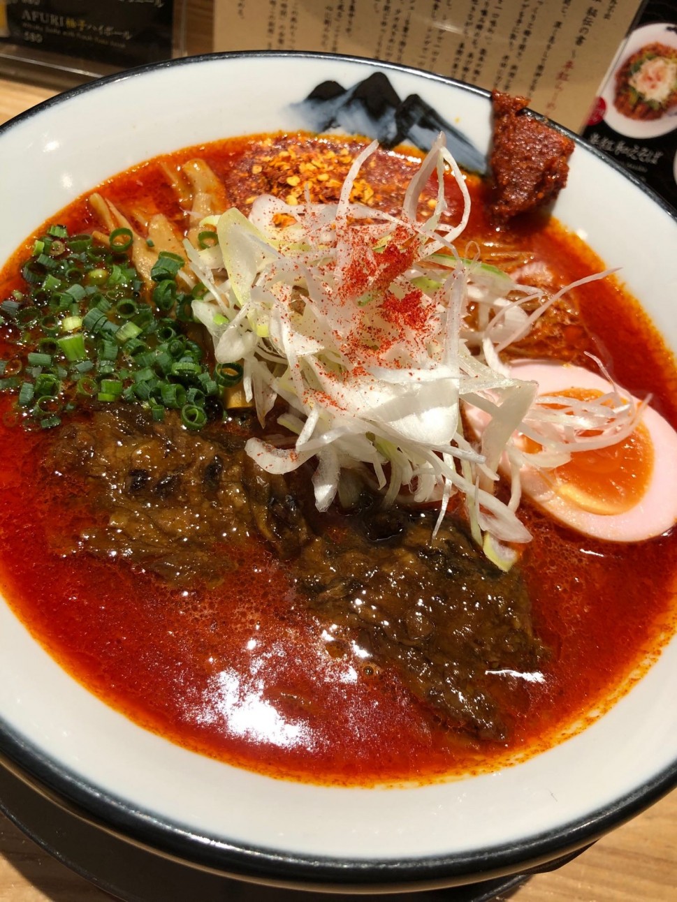 謎の酸味(きっと柚子)が気になりましたがお上品な激辛らーめんでした☺️