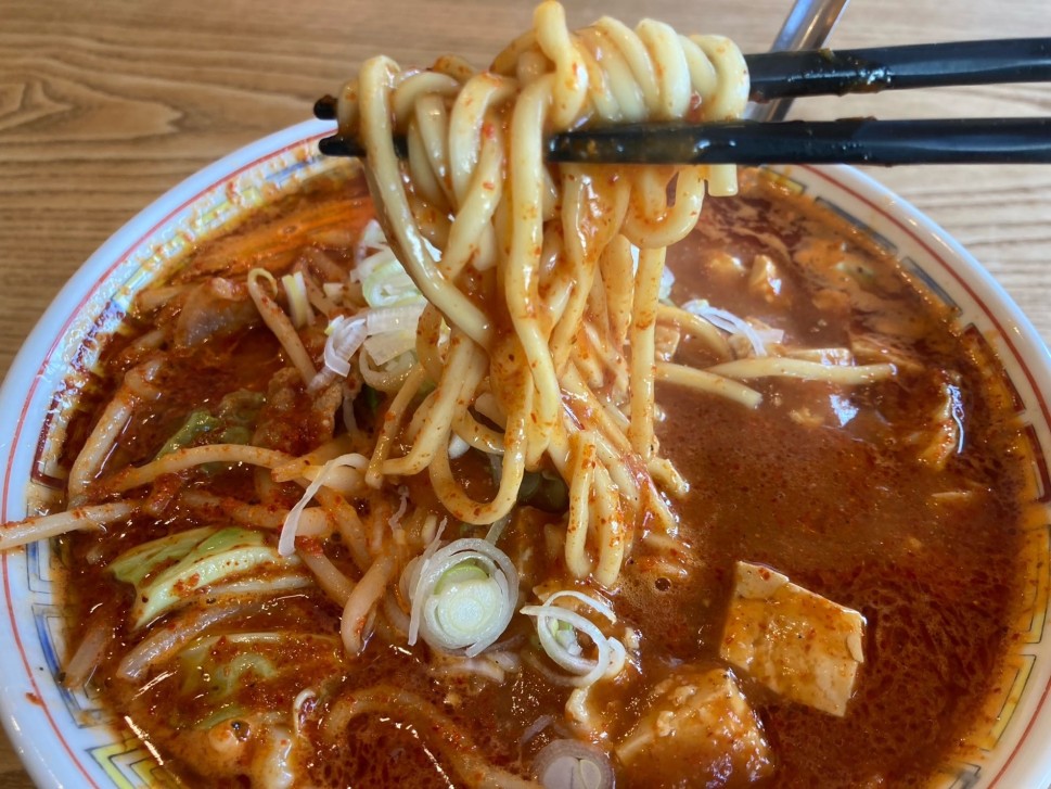 激辛デビルメン@松本家(小山市)2段階あるデビルメン、どうせ大したことなかろうと甘く見てたので辛い方にチャレンジ、🥵結果は2.0KMでした。おかげさまで、同伴者(家内)に「ゆっくり食べて偉いね👏」と褒められました(違)
