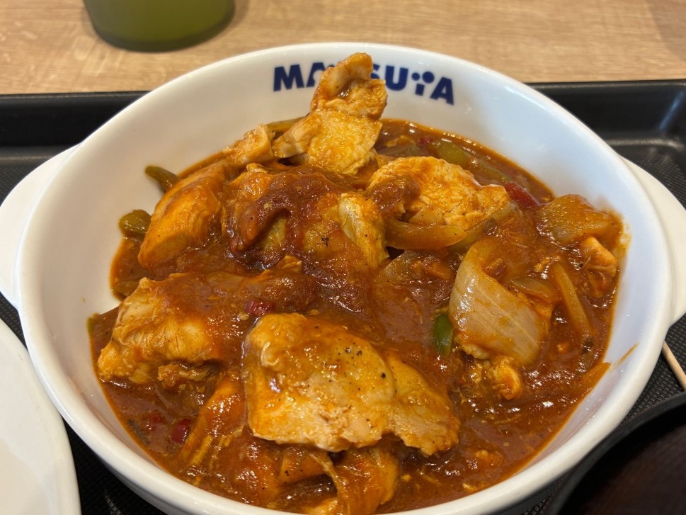 松屋(小山店)で「デビルチキン」をいただきました。甘辛くてちょうどいいとも思うが、辛さを足せ(増せ)ればいいのになとも思った。