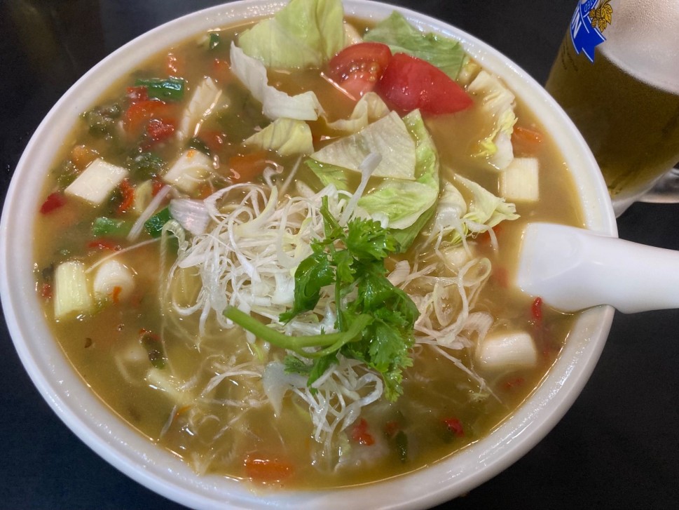 ビールをチビつきクールダウンした後の、少し冷めたスープが旨塩味の濃縮還元ピリ辛仕立てで、これをつまみに飲めというメッセージありきの量なのだと納得(?)。
