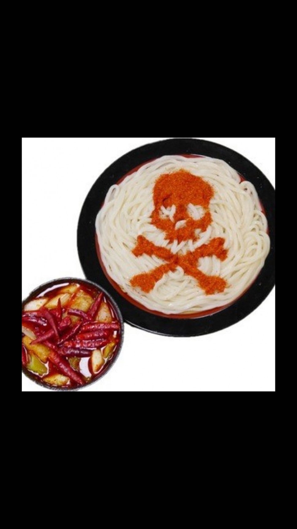 ドクロの粉が実は1番厄介。うどんに辛味が絡む。逃げ場がない。ジョロキア地獄のスープ完飲はもはや修行。旨辛は五辛までだ