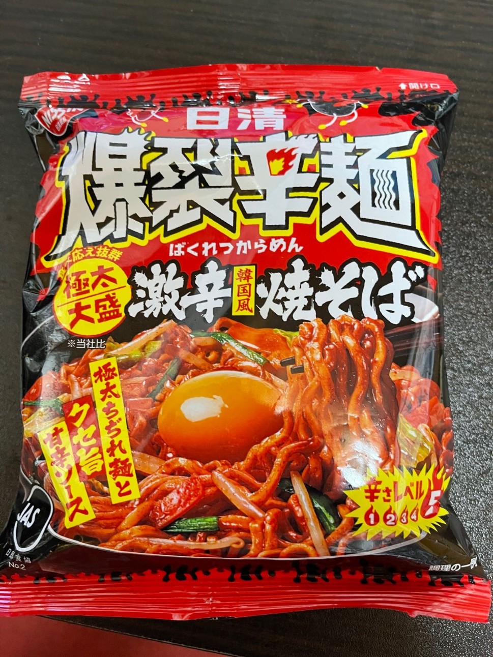 爆裂辛麺のラーメンと比べ、汁が無いため辛さが増している気がします。