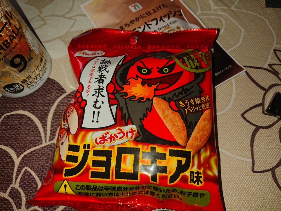 ジョロキア味というからどんだけ辛いかな?と思って食べたら、強みのある辛さの中に、米菓特有の甘味があり丁度いい。