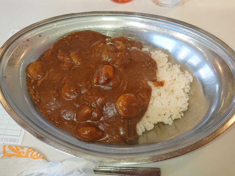 実を言いますと、こういうシーフードなカレーが最も好きなスタイルなのです。えび自体はぷりぷりで、なかなかの食べごたえ。