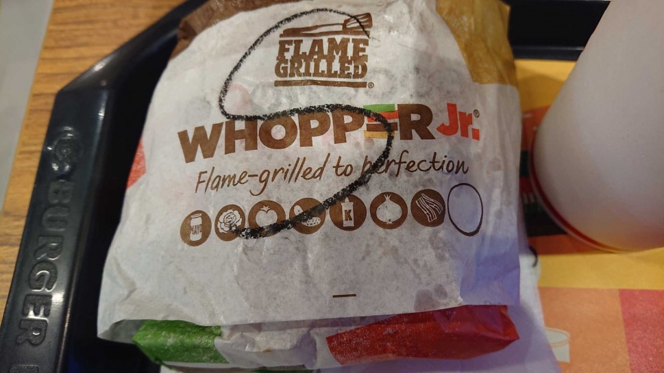 辛いメニューがこれと、チリチーズフライ(後にジャッジメント)しか無かったので、まずはこのレギュラーメニュー(だと思う)のスパイシーワッパーJr.から。
