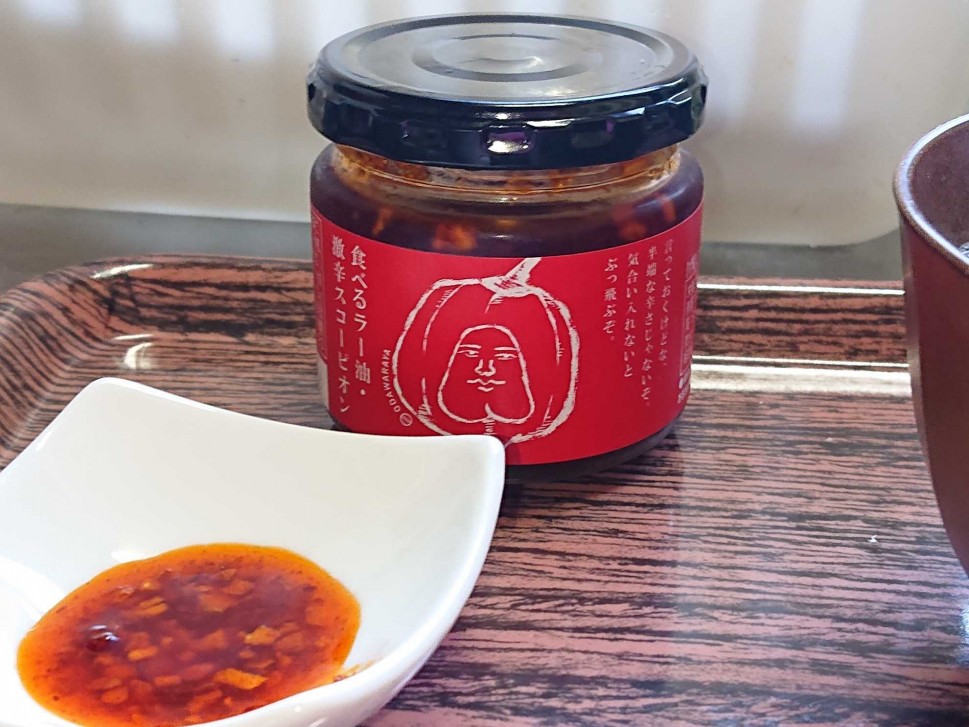 スコーピオンと聞いてタバスコになったやばいあれを連想しがちだが、食べるラー油仕様だと美味しい。辛さよりもフライドガーリックの美味しさが大きい。