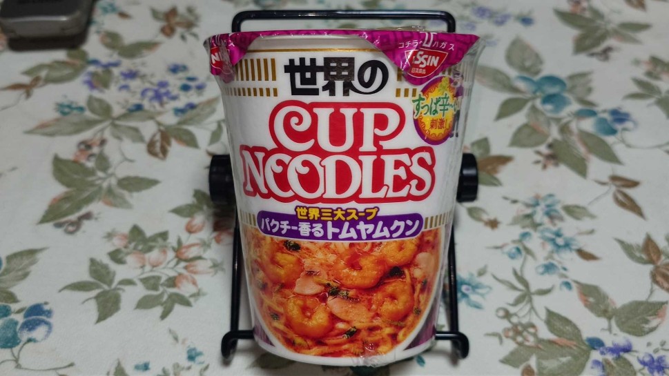 今回の辛メーター投稿は、夕飯のガパオライスの付け合せとしてスーパーで買った「世界のカップヌードル パクチー香るトムヤムクン」。