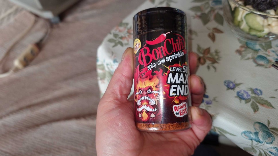 店内にはインドネシア料理が主のハラル食品なるコーナーが設けられており、その中で最も気になったこの〚BonChili Level50 MAX END〛なる粉末唐辛子らしきものを購入。価格はだいたい600円以内。原材料は唐辛子、食塩、植物油脂、シャロット(エシャロットのことかな?)、と表記。輸入者はユナイテッドグルメ㈱、販売元が㈱二宮という東京都内の会社。