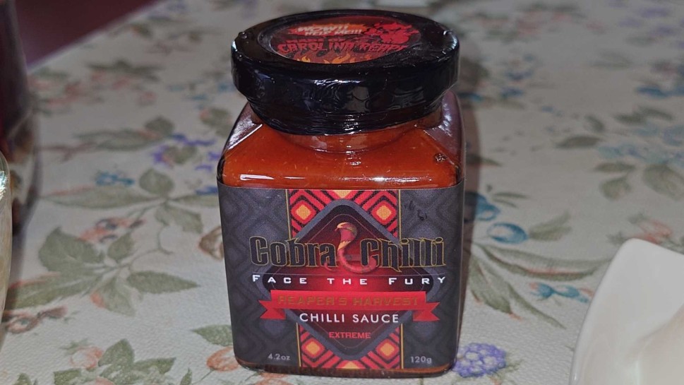 先ほどこのコブラチリソースを、耳かき1杯くらいの分量で温泉たまごに垂らして食べてみたら、少量でも口周りがひりつくくらいに辛い! けれどもトマト込みなのかな、美味しさもある。いや~、さすがキャロライナリーパーの破壊力ですなあ。