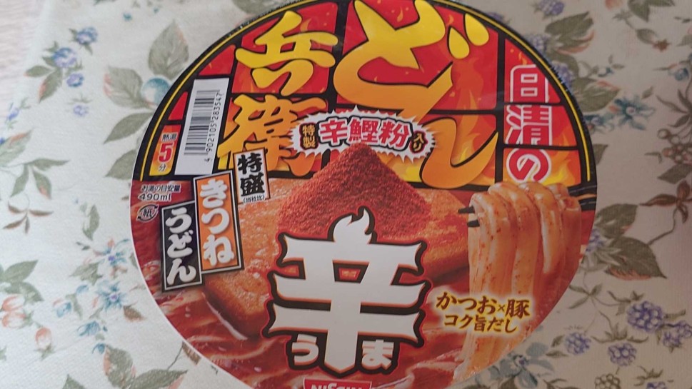 熱湯調理から5分経過後、液体スープと辛鰹粉を投じて混ぜて食べてみると、どん兵衛にしてはなかなかに辛い方。公式の辛さレベルが5段階中4というのだから、それなりの辛さはあるし、おつゆはうどん・そば向けならではの甘みがある。