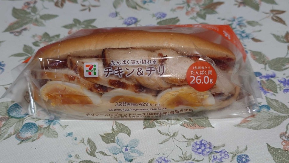 チリソースにはプラントベース(植物由来)食品が使われているらしい。原材料一覧を見ると「おから加工品」といったものかな?あと大豆たんぱく加工品、豆乳、大豆粉、パプリカピューレ、といったのもそうなのかな?辛さの元はチリパウダー、唐辛子、クミン。これが採用しているスパイス類なのだろう。動物由来のものはローストチキンとゆで卵くらい。あとの野菜はタマネギのみ、かな。