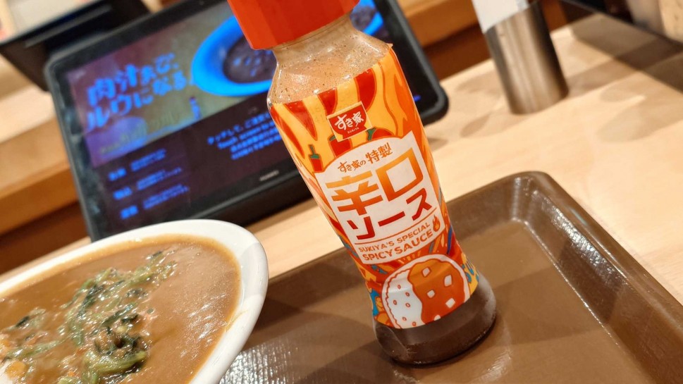 亭主からもらった紙クーポン消化のため、すき家へ。ちょうどこのカレーにもれなくついてくる辛口ソースの投稿をやろうと思っていたところだった。