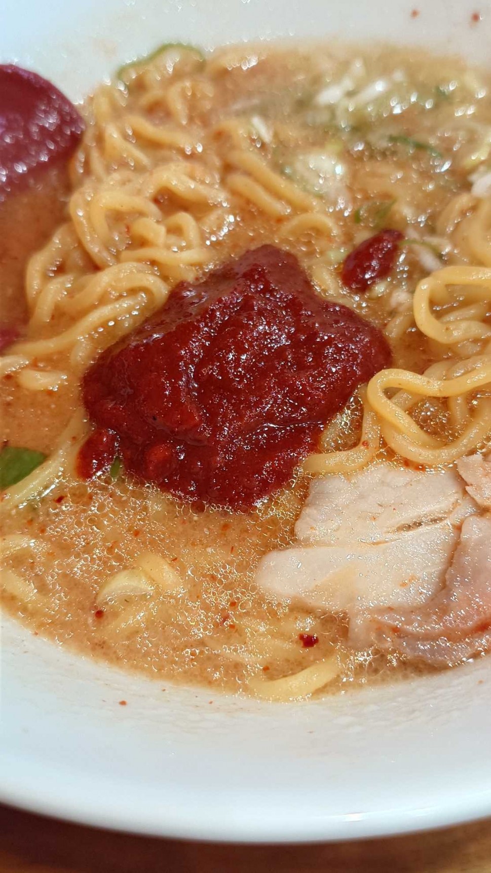 先ほどの辛みそらーめんに任意注文したからたまを、ラーメン半量ほど消化した時点で投下して食べてみた結果、おおっ!これはいい感じに刺さる辛さ。別段ハバネロやジョロキア等のギネス級唐辛子など使っていないと思うが(それら特有のクセがないという感想ゆえ)。本鷹みたいなものでも使っているのかな?
