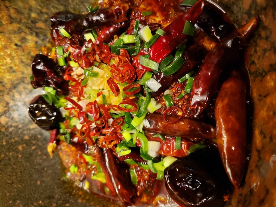 石黒商店の風神並の辛さ!半分くらいでスプーンが止まる。漬物で口の辛さを和らげてなんとか完食できたが、胃腸にかなり負担あり。麻婆餡自体は味噌味がなんとも旨い。